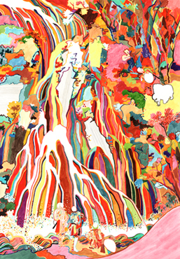 ohne Titel (nach Hokusai), 90 x 62,5 cm, Aquarell, Buntstift, Bleistift auf Papier, 2011, Privatsammlung